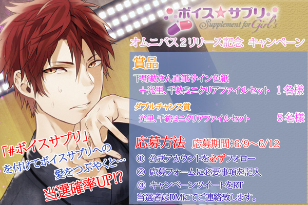 オムニバスパック2リリースを記念して抽選で千紘役 下野紘さんの直筆サイン色紙セット1名様と、光里、千紘がそれぞれ描かれているオリジナルミニクリアファイルを2枚1セットで5名様の合計6名様にプレゼント