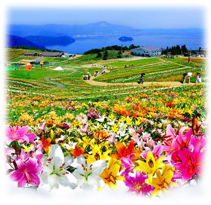 2015年で第7回目を迎える「びわこ箱館山ゆり園」は、50,400m2の高原に35万球、約250万輪のゆりを鑑賞できるグリーンリゾートです。ゆりは、7月中旬から8月上旬ごろに見頃迎えます。ゆりの見頃は2度あり、期間の前半には色鮮やかな「すかし系」、後半には香りのするハイブリッド系のゆりが咲き乱れます。 箱館山は、標高680mの山頂から琵琶湖を見渡すことができ、竹生島や伊吹山といった絶景が広がる立地に位置。