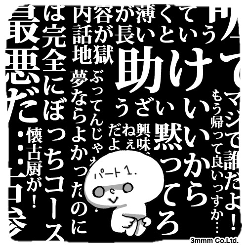 第1弾はイベントやOFF会など人の集まりに参加しても上手に立ち回れなかったり輪の中に入れなかったり気持ちが乗らなかったり…そんな時に感じた心の闇を闇っこちゃんが代わりに爆発させ、鬱憤を巻き散らかしてくれます。