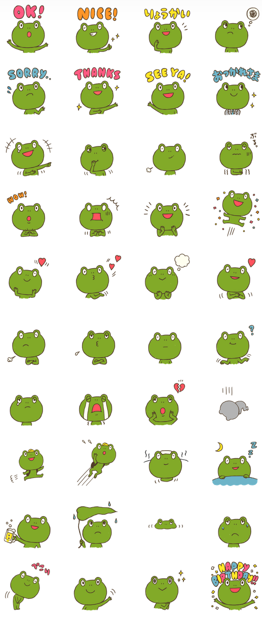 「かえるべーしっく」はシンプルなデザインとなっておりま。文字が少ないのでどの場面でも使いやすく、日本語圏以外の方も気軽に使用していただけます。老若男女幅広くお使いいただけるスタンプです。なので一つ持っていればとても便利にお使いいただけます。