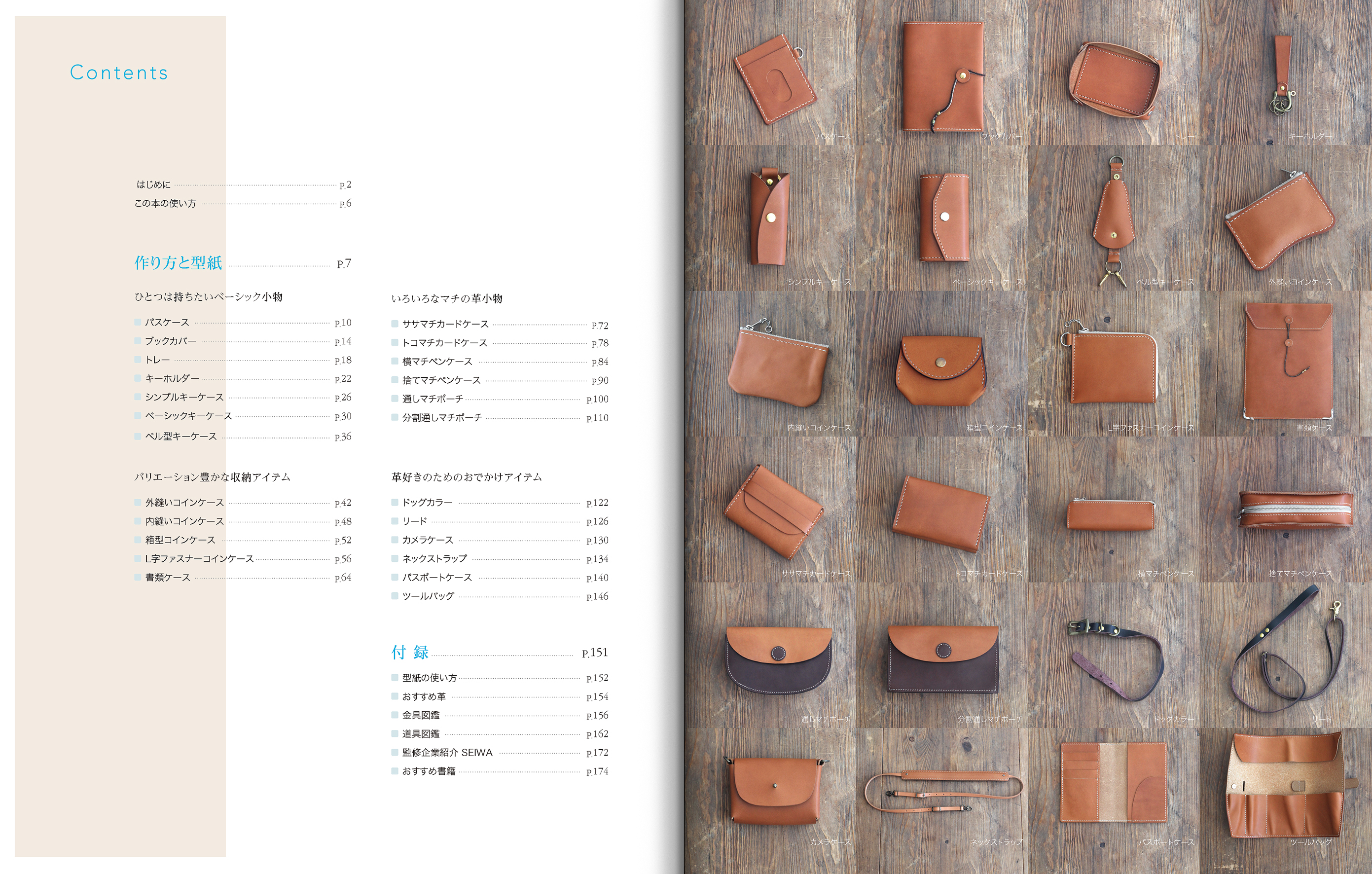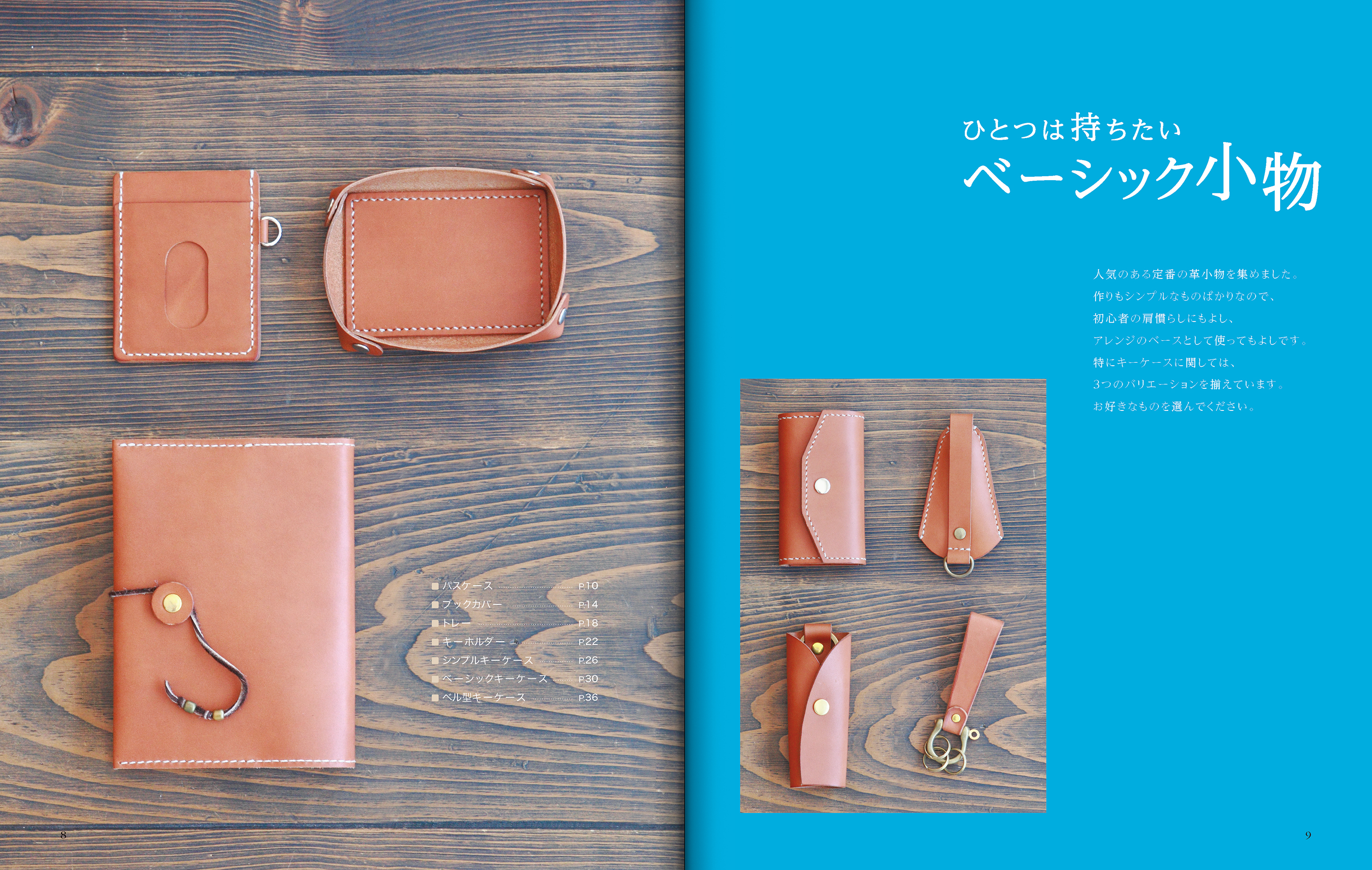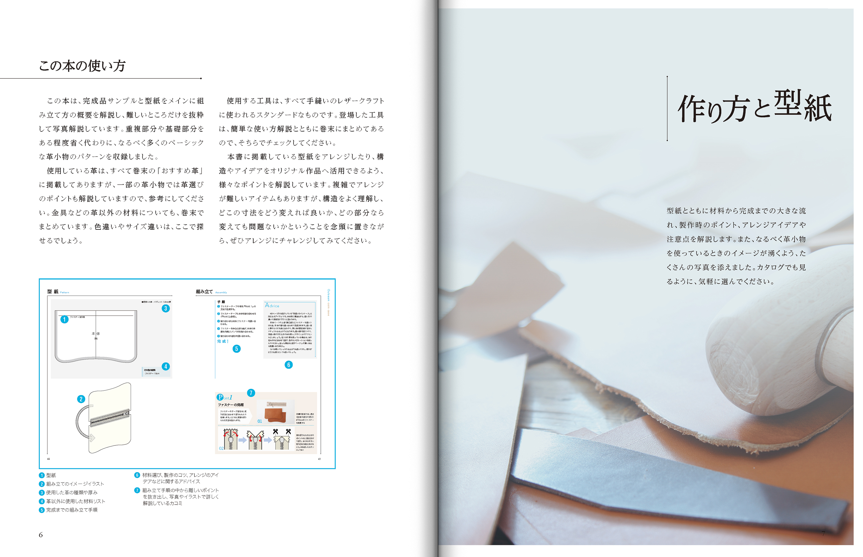 さらに、手縫いレザークラフトの定番の構造を満遍なく網羅しているので、まったくオリジナルの作品を作る際のアイデア集・テクニック集としてもお使いいただけます。