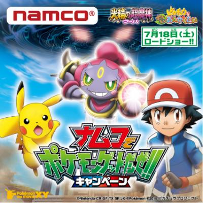 株式会社ナムコ(本社:東京都港区)は、7月18日(土)ロードショーの映画『Pokémon the movie XY「光輪(リング)の超魔神フーパ」同時上映「ピカチュウとポケモンおんがくたい」』の公開を記念して、6月19日(金)より「2015ナムコでポケモンゲットだぜ!!キャンペーン」第二弾を、ナムコ直営アミューズメント施設約100店舗で実施いたします。