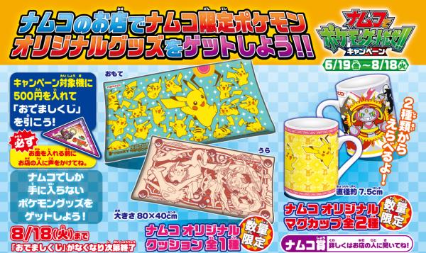 期間中、キャンペーン対象機やメダル貸出機に500円を投入していただくと、ナムコ限定ポケモンオリジナルグッズがその場で当たる『おでましくじ』(三角くじ・はずれ無し)を差し上げます。