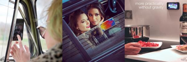 Extraversoは薄さ約1.5ミリのイタリア製スマートフォン用カバーです。最先端の技術を駆使した高品質の樹脂素材を使用したことにより、スマートフォンに装着するだけで、滑らかな表面に対して強力に吸着します。ガラス、鏡、アルミニウム、アクリル樹脂などに軽く押しつけるだけで力強く吸着しますので、今までにない利用方法が可能になります。