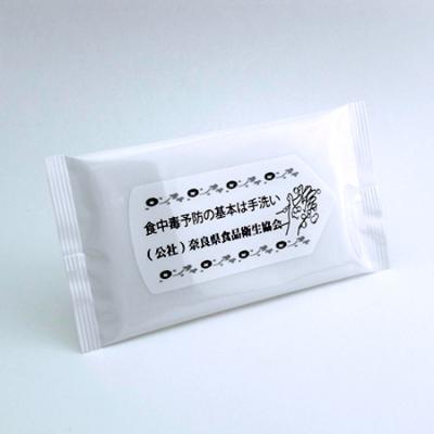 食品衛生管理の指導や食品衛生知識の向上のための各種講習会開催による啓発事業を行う公益社団法人が、食のイベント開催に際し一般消費者向けのノベルティとして名入れウェットティッシュを制作。清潔感を印象付ける白い素材素地に印刷されたのは、手洗いによる食中毒予防を呼びかける同協会のメッセージ。多くの来場者の意識向上にお役立ていただいたとのことです。