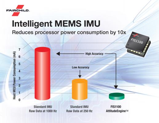 本日(2015年6月17日)、フェアチャイルドセミコンダクタージャパン株式会社(本社:東京都渋谷区、社長:神戸 肇、以下フェアチャイルド・ジャパン)は、MEMS 6軸慣性測定ユニット(IMU)「FIS1100」の販売を開始したと発表しました。この「FIS1100」は、ワンパッケージ(3.3 x 3.3 x 1 mm)内に6軸MEMSセンサーと独自のコ・プロセッサー(AttitudeEngineモーションプロセッサー)を内蔵。さらにシステムレベル・ソリューションを簡単に組み込むことができるクラス最高の「9軸(XKF3)センサーフュージョン」アルゴリズムを併せて使用することで、電池駆動の幅広いモーション・アプリケーションにおいて、処理時の消費電力を1/10まで低減という卓越した経験を設計者の方々に提供します。また、本製品はMEMSとモーショントラッキングに戦略的に投資してきたフェアチャイルド初のMEMS製品です。