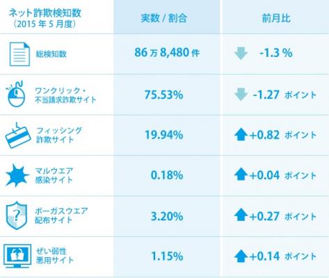 BBソフトサービスの「Internet SagiWallTM(インターネットサギウォール)」で検知したデータを基にした、2015年5月度のインターネット詐欺リポートです。