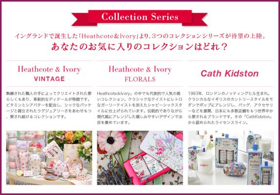 Heathcote & Ivoryのボディケアアイテム商品では、製品の品質も高いことからイギリスを代表するブランドCath KidstonやSandersonといった有名ブランドのボディケア商品の製造もおこなっており、ブランド誕生からわずか10数年で、パリ、ニューヨークなどの主要都市をはじめ世界中に店舗を展開しております。