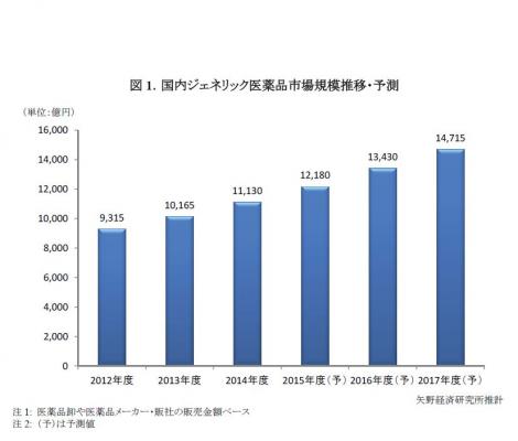 ◆ 2014年度の国内のジェネリック医薬品市場は前年度比109.5%の1兆1,130億円