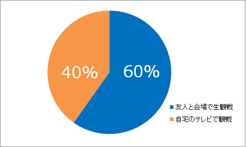 「友人たちと会場で生観戦」と回答した人が60.0%、「自宅のテレビで観戦」と回答した人が40.0%という結果となりました。