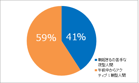 さらに同サイト会員女性を対象に、休日の過ごし方について聞いたところ、「午前中からアクティブに活動する朝型人間」と回答した人が59.0%、「朝起きるのが苦手な夜型人間」と回答した人が41.0%という結果となりました。