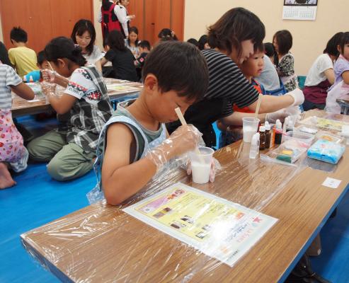 ヤマサキ西風新都工場は、2007年より化粧品製造工程の一般公開を行っており、年間約3,500名以上のお客様に来場いただいています。通常の工場見学に加えて、定期的に特別イベントも開催しており、特に夏は親子で楽しめる体験型イベントが恒例で、夏休みを利用して来場する小学生を中心に、好評を博しています。