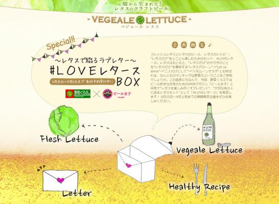 近年、クラフトビールのブームとともに日本では多くの醸造所から様々な種類のビールが登場しています。その中でも野菜くらぶが昨年秋から販売している VEGEALE LETTUCE(ベジエールレタス)は産直団体が自社で取り扱うレタスをふんだんに入れたビールとしてその珍しさから大きな反響を呼んでいます。今回、メディア&コミュニティ「ビール女子」では、その VEGEALE LETTUCE をさらに楽しむべく、原料である群馬県昭和村のレタスと、レタスで作るおつまみレシピなどをセットにした「#LOVEレタースBOX」をプロデュースし、本日 8月 25 日(火)より、野菜くらぶ Hp にて販売を開始いたします。