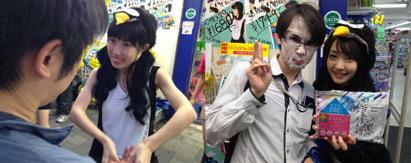当日は、メンバー4人がペンギン人間の衣装を着用し、「ペンギン人間でチャレンジ100」と題して「Malon.」のエステティックマスクを片手に商品のPR始めると、噂を聞きつけて集まったアイドルファンや、かわいらいしいペンギン衣装に反応した女性客や外国人、スマホカメラを向け楽しむ人々など、大勢の方々に足を止めていただき、イベントは終日大盛況となりました。