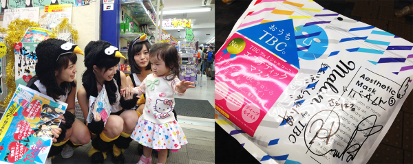 また商品購入者には「商品へのサイン入れ」、「ペンギンハンドマッサージ」、「フェイスマスクをあなたの顔にお付けします」などのイベント特典があり、特典を楽しむ人々も会場を大いに賑やかしていました。