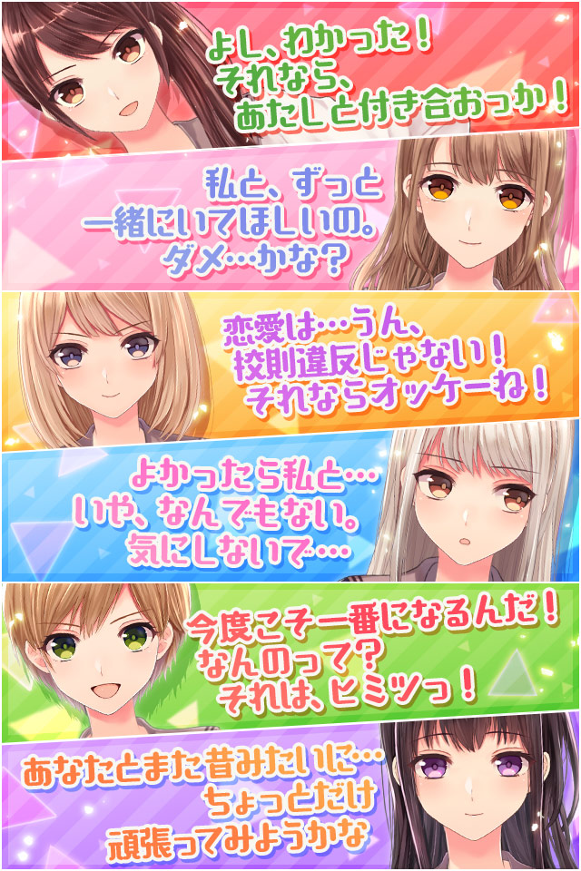 学園を二分する人気者ふたり、学園一の不良と優等生、幼馴染ふたりなど、バラエティに富んだパターンの『2人の恋人』。今後、キャラクターの組み合わせをシャッフルした追加パターンも配信予定となっており、新たな『2人の恋人』でストーリーが展開されます。