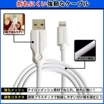 充電の抜き差しで負荷のかかりやすい付け根部分には、硬質プラスティックを採用し強化。ケーブル表面はナイロンメッシュで覆うことで二重構造にし、ねじれや折れなどのダメージに強くなっています。これにより従来品よりも3.5倍の耐久性を実現し、タフで断線しにくくなりました。