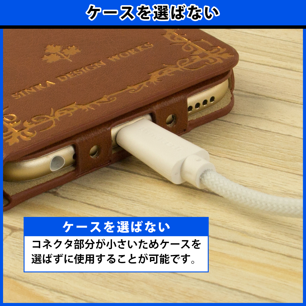 ケーブルの強度だけでなく、『充電』という充電ケーブル本来の性能も最大限に引き出す作りとなっています。ケーブルは最大2.4Aの出力に対応し、充電時の電圧低下を軽減できる独自技術を採用しました。iPhoneシリーズの急速充電や、iPadシリーズが必要とする大電流でもストレスなくしっかりと流せるので、充電時間の大幅な短縮を実現します。