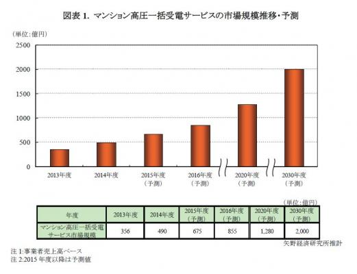 ◆ 2014年度のマンション高圧一括受電サービス市場を490億円と推計