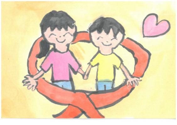 (2)作品の中に「オレンジリボン」を描いてください。