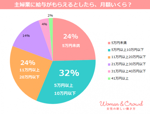 主婦業の月額給与、8割の女性が「20万円以下」と回答