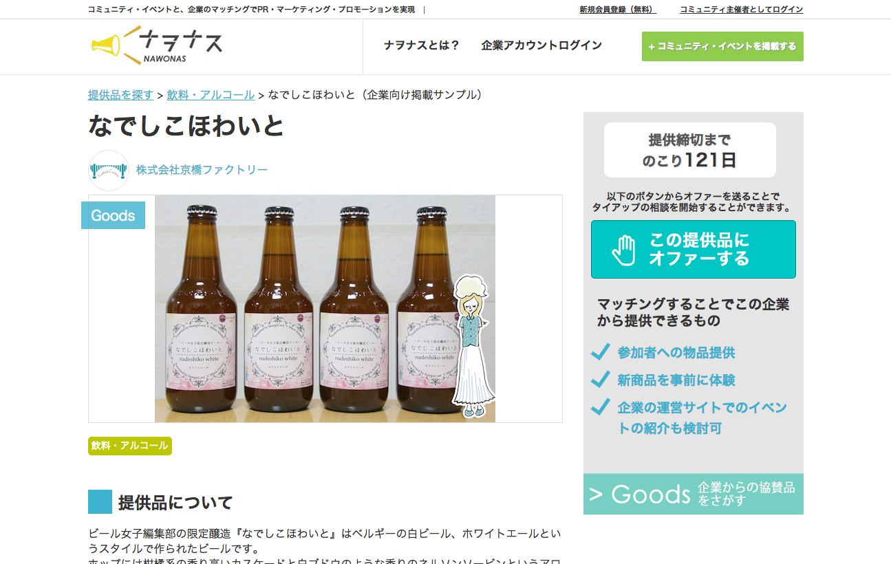 本サービスでは、本日の開始から 10 月末日までの約 3 ヶ月間、期間限定での利用料無料プランを実施します。掲載企業は謝礼無料を提示しているコミュニティに対し実質無料でマッチングすることができます。今後、それぞれの企業ニーズに対応した上位プランなども順次拡大予定です。また、今回のサービス公開にあたり、アサヒビール株式会社様、サントリービール株式会社様、Uber Japan株式会社様(順不同)、その他複数のメーカー企業様にもナヲナスをご利用いただいております。