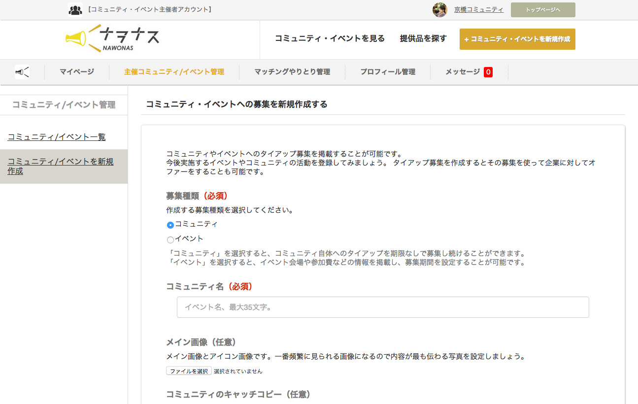 ◆サービス名: コミュニティ× PR ・マッチングサイト「ナヲナス」