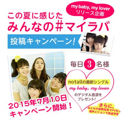 また、同シングルのリリースを記念して、期間中、notallのデジタル音源「my baby, my lover」が毎日3名の投稿者に当たる「この夏に感じたみんなの#マイラバ投稿キャンペーン」を2015年7月10日~2015年8月15日まで開催いたします。
