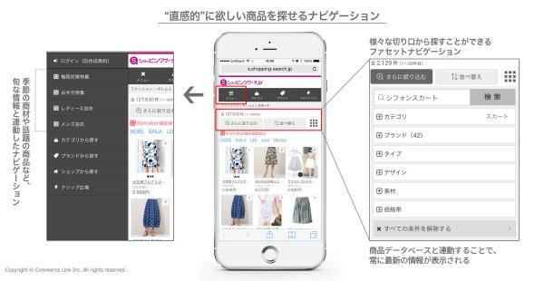 ECサイトの集客・売上拡大を支援するコマースリンク株式会社(本社:東京都大田区 代表取締役社長:永山 淑子)は、2015年6月22日(月)に商品検索サイト「ショッピングサーチ.jp」(http://www.shopping-search.jp/)の商品データベースとナビゲーションを再構築し「直感的に商品を検索できるサイト」に全面リニューアルしました。