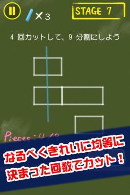 「激ムズ等分パズル100」は子供から大人まで誰でも簡単に楽しめるシンプルなiPhone、Android用ミニゲームです。
