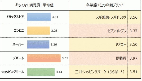『流通業界の“おもてなし”満足度調査』 <業態別>
