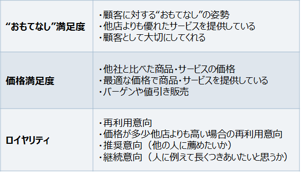 ■ 本調査の『“おもてなし”満足度』の指標は、以下の3項目の回答平均値を使用しています。