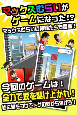 「マックスむらいの全力・坂」は子供から大人まで誰でも簡単に楽しめるシンプルなiPhone、Android用ミニゲームです。