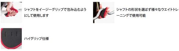 バーベル・ダンベルトレーニングに最適な、着脱簡単なグリップ。裏側は全面すべり止めで、バーを握りやすくなっています。人差し指・中指・薬指を通し、小指と親指はフリーの位置に配置できるので、サムアラウンドグリップ・サムレスグリップ、どちらも可能。手の甲部分は指サック部分だけなので、通気性に富んでいます。