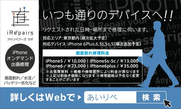 Life Support Lab株式会社(本社:東京都千代田区、代表取締役:河合晴輝)は、iPhoneのオンデマンド出張修理サービス「iRepairs Lab(アイリペアーズ ラボ)」(以下、「あいりぺ」という)の独自マッチングシステムを、2015年6月29日にリリースしたことをお知らせいたします。