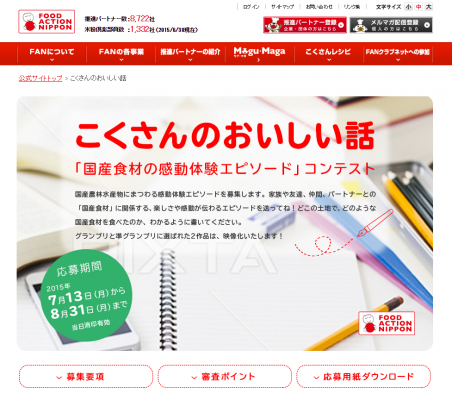 『こくさんのおいしい話~「国産食材の感動体験エピソード」コンテスト~』 : http://syokuryo.jp/kokusan-story/