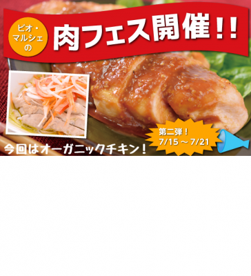 今回のフェアでは、希少なオーガニックチキンを本日より1週間限定特別価格にて10名様限定でご案内します。また、夏におすすめ!「鶏むね肉の野菜たっぷりマリネ」のレシピもご紹介しております。