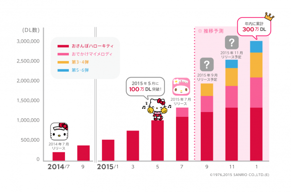 そして今回の「おでかけマイメロディ」の他にも、今年度中に4本の協業アプリのリリースを予定しております。これまでのヘルスケアカテゴリのみならず、カジュアルゲームやツールアプリ等、様々なアプリを展開していく予定となっており、サンリオの様々な大人気キャラクターとコラボしながら、年内に300万DLを目指してまいります。
