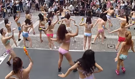 新宿駅東口のアルタ前イベントスペース「新宿ステーションスクエア」にて、突然音楽が流れ、その音楽に合わせて人ごみの中から水着を着用したダンサーが次々と登場。総勢30名によるフラッシュモブダンスを実施致します。突然のフラシュモブダンスのパフォーマンスで、道行く人々に対して新作水着の魅力を躍動的にアピールしていきます。