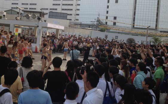 新宿駅東口のアルタ前イベントスペース「新宿ステーションスクエア」にて、突然音楽が流れ、その音楽に合わせて人ごみの中から水着を着用したダンサーが次々と登場。総勢30名によるフラッシュモブダンスを実施致します。突然のフラシュモブダンスのパフォーマンスで、道行く人々に対して新作水着の魅力を躍動的にアピールしていきます。
