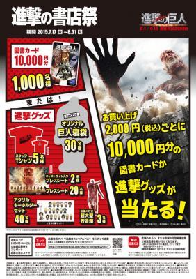 日本出版販売株式会社(本社:東京都千代田区、代表取締役社長:平林 彰、略称:日販)は、書店店頭の客数・売上アップに向けた取り組みである「祭」の2015年度第一弾企画「進撃の書店祭」キャンペーンを、7月17日(金)から8月31日(月)まで、全国の取引書店で実施します。