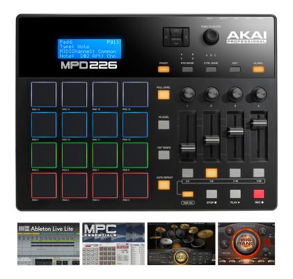 ■付属ソフトウエア:Ableton Live Lite、AKAI Professional MPC Essentials、Big Bang Cinematic Percussion & Big Bang Universal Drums by SONiVOX