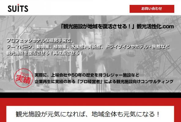 経営コンサルティング事業等を営む株式会社スーツ(本社:東京都渋谷区、代表取締役:小松 裕介)は、平成27年7月21日(火)より、経営コンサルティング事業として、「観光施設向けコンサルティング」のサービスを開始いたします。また、当該サービス開始に伴って、ウェブページ「観光活性化.com」(URL:http://www.kankou-kasseika.com)を開設いたします。
