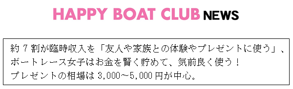 ボートレース女子には、お金を賢く使い「友人や家族」を大事にする素敵な女性たちが多い。そんなボートレース女子に、HAPPY BOAT CLUBは引き続き注目してまいります。