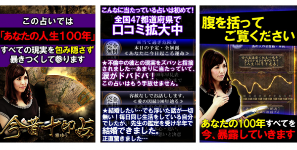 ・アプリ名称:緊急占い速報◆あなたの100年経歴書◆雅ゆう【今昔十印占】