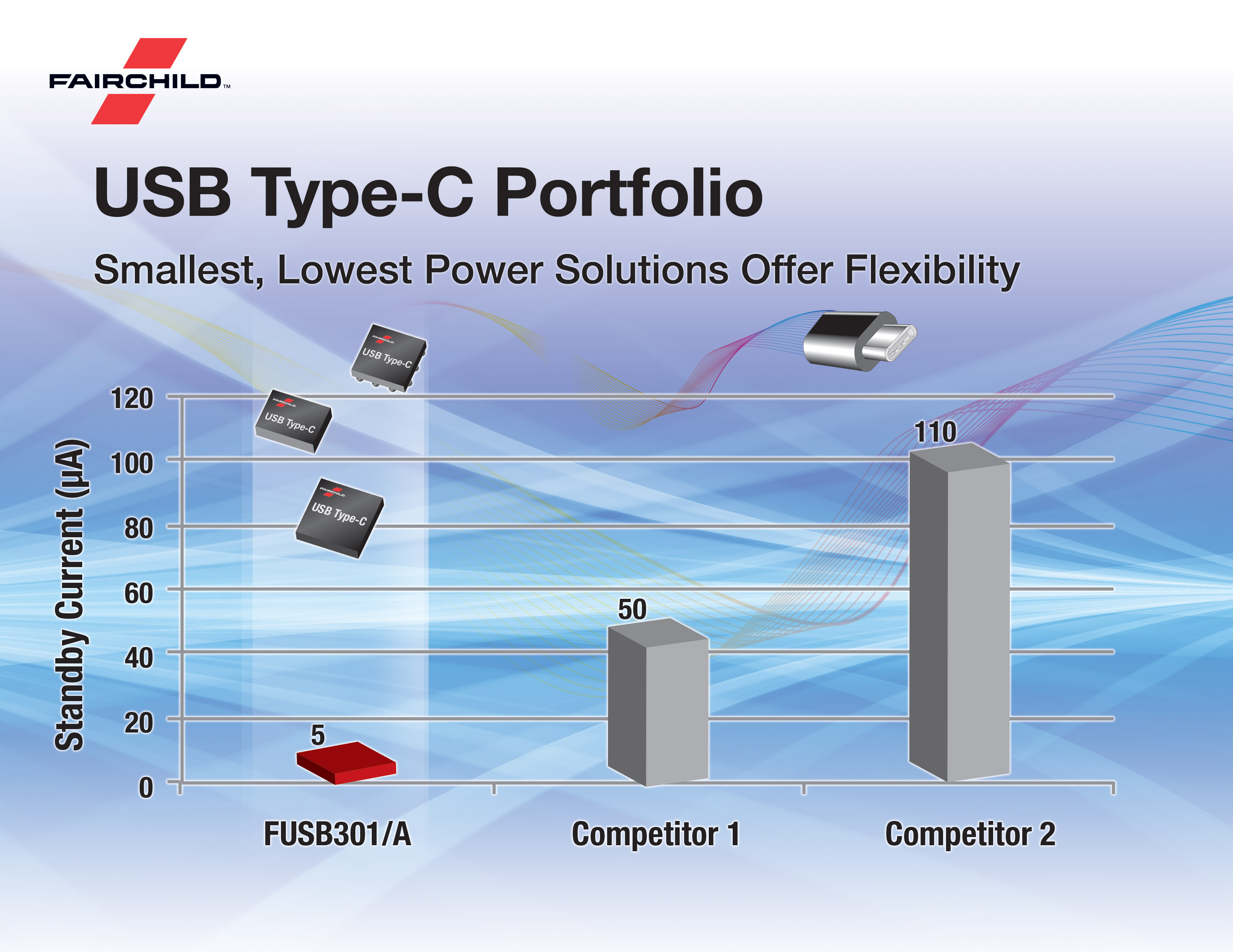 本日(2015年7月23日)、フェアチャイルドセミコンダクタージャパン株式会社(本社:東京都渋谷区、社長:神戸 肇、以下フェアチャイルド・ジャパンと略)は、スマートホン、PC、ACアダプター、その他USBポートを使った製品に、機器メーカーが次世代のUSB機能を即座に、かつ簡単に追加することが可能なUSB Type-C製品の総合的な製品群を発表しました。他社の製品と比べ、低消費電力かつ小型なフェアチャイルドのUSB Type-C対応製品はより良い電力効率を実現し、システムとしての消費電力を抑え、極薄かつスマートな製品をめざすお客様に最適です。
