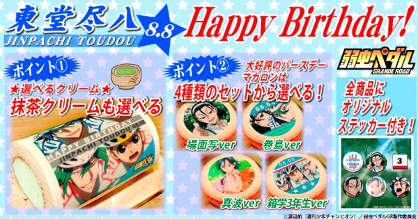 「プリロール」を運営する株式会社栄通(本社:東京都八王子市)は、「弱虫ペダル GRANDE ROAD」の人気キャラクター「東堂尽八」の誕生日限定ケーキ&マカロンを2015年7月22日に発売致しました。