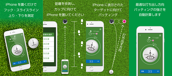 本アプリは、ゴルフコースでボールがグリーンに乗った時に活躍します。