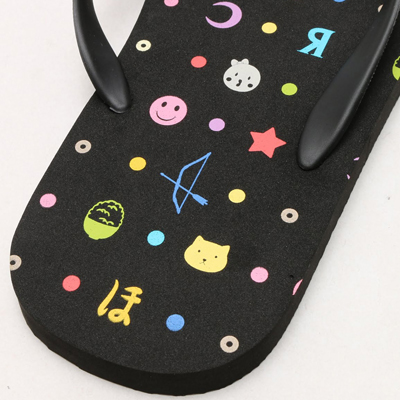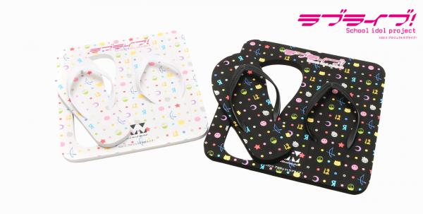 μ's 9名のメンバーロゴをモチーフとした総柄プリントが目をひく、型抜きタイプのビーチサンダルです。パッケージのままお部屋に飾っても良し、もちろんこの夏ビーチでも活躍間違いなしのアイテムです。本体のカラーバリエーションは白と黒2色で展開します。