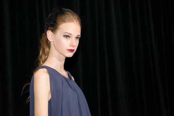 ビューティクリエイター・メイクアップアーティストRUMIKOさんによるメイクショーが行われました。RUMIKOさんは1980年代からニューヨークを拠点に世界各国の雑誌・広告等で活動をスタートし、トップモデルやフォトグラファーから絶大な支持を受けるアーティストで、今回発売する「日本メイクアップ技術検定試験1級のイメージメイクテクニックDVD『Beauty Creation』」にも出演しています。メイクショーでは、しっかりしたアイブロウと濃いネイビーのアイシャドウ、バーガンディーのリップといった、2015年秋のトレンドメイクを披露し、会場内の熱い視線をステージに集めました。